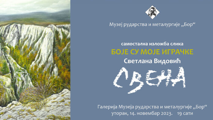 Bor, 11. novembar – U galeriji Muzeja rudarstva i metalurgije u Boru, u ulici Moše Pijade 19, u utorak, 14. novembra u 19. sati, biće otvorena samostalna izložba slika „Boje su moje igračke“, autorke Svetlane Vidović.